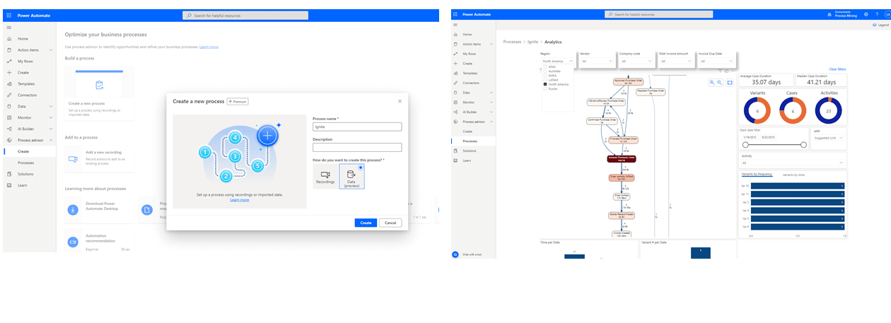 No Ignite , a Microsoft anunciou a próxima evolução para ajudar as organizações a otimizar o modo como trabalham com a revisão de mineração de processos por meio do process advisor no Microsoft Power Automate.
